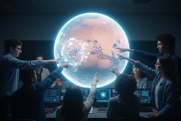 المحاكاة الرقمية: يشاهد الطلاب محاكاة تفاعلية ثلاثية الأبعاد لدورة المياه على الأرض وعلى المريخ.